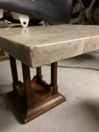 wood base is sturdy but has cosmetic damage that's very noticable in person. Marble has some knicks along edge, and chipped on the underside of one corner (see pics).