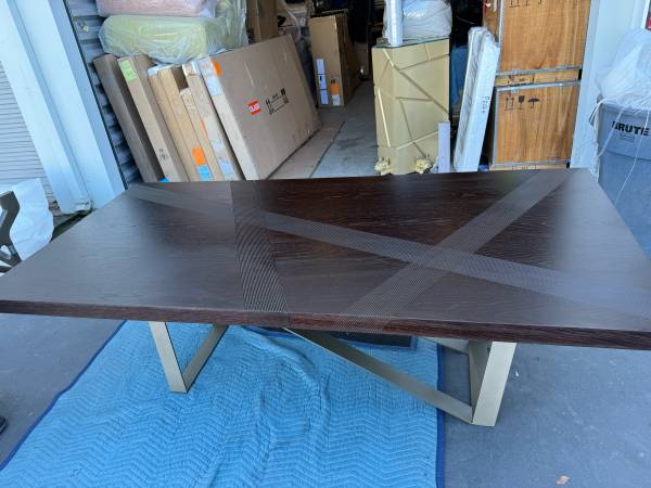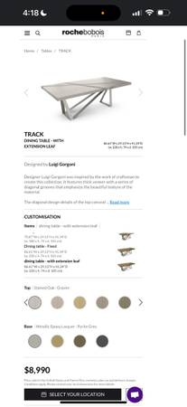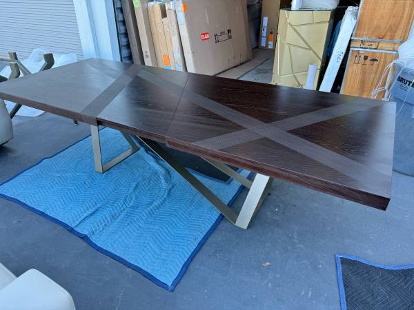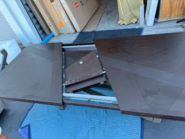 As-is great conditions Roche Bobois Track dining table with extension leaf 86.5” extended to 106” Available in espresso finish.