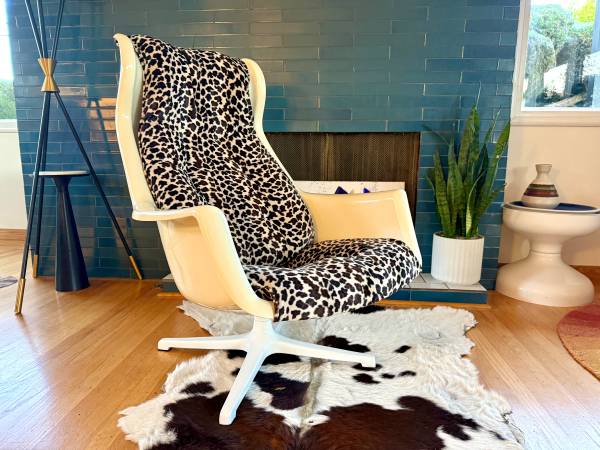 For sale is a Vintage Dux GalaxySpace Age armchair by Alf Svensson & Yngvar Sandström. The Galaxy armchair features a striking white acrylic frame, original snow leopard upholstery, and excellent condition metal feet that rotate smoothly. This chair’s fabric is true vintage and was a factory special order, and this is the only example seen in snow leopard print. This chair was recently imported from Denmark, and is true vintage, and a very rare find in the US.