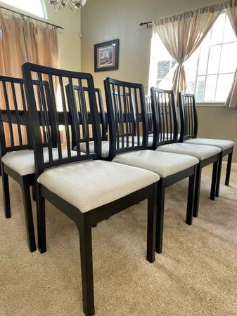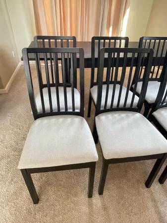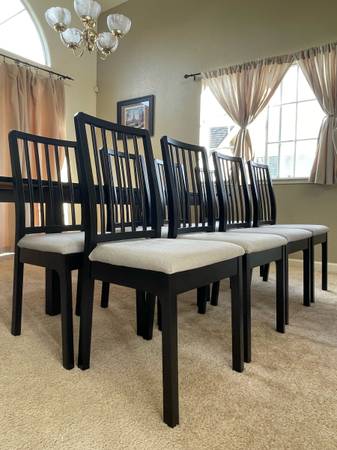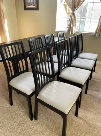 In great condition. 8 Chairs have BRAND NEW chair covers so Like NEW.