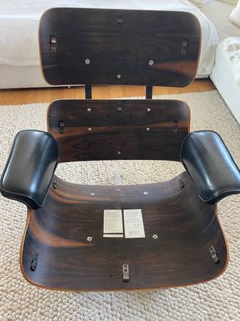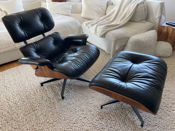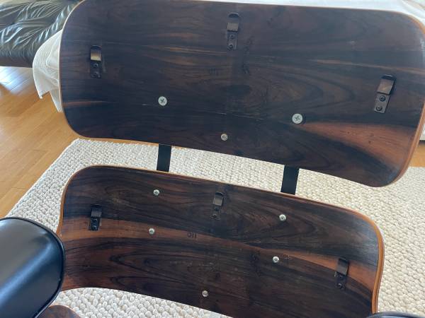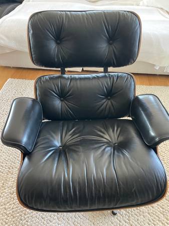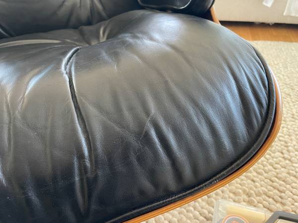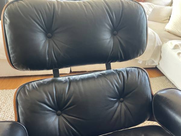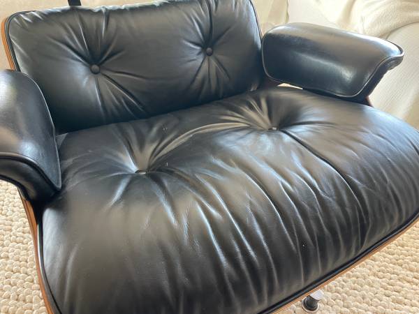 Genuine Herman Miller Eames Lounge Chair Black Leather with vintage Rosewood shell. Excellent condition. Family heirloom. A few flaws in leather which are shown in pics. Non-smoking household. Well...