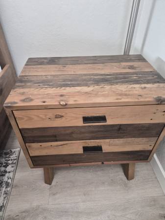 Karsten Collection previous generation. Beautiful reclaimed wood. Mid century style modern Purchased for over $3k excluding mattress. California king size. Measurements: Bed 79" W x 86.5 L x 61H...