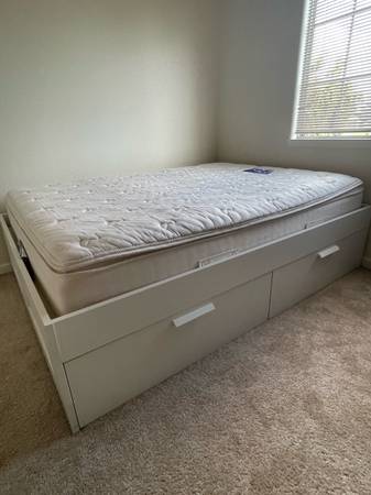 Firm mattress with spring coils. Selling mattress and storage bed as a set