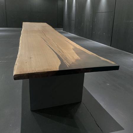 Our specialty is extra-large, live edge dining and conference tables, like the white oak beauty pictured here.