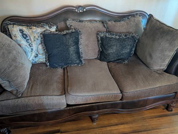 4 Piece Living Room Set . Brown sofa, chair, ottoman and coffee table also TV stand “ Bonus “ ( MOVING SALE MIUST GO ! )