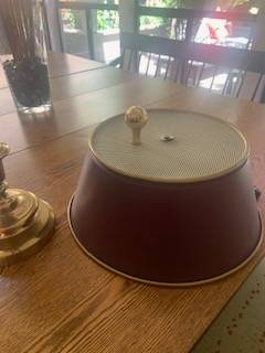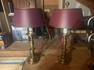 Brass /burgandy metal shades. 2 40W lightbulbs..controlled separately with chain $50 ea OBO