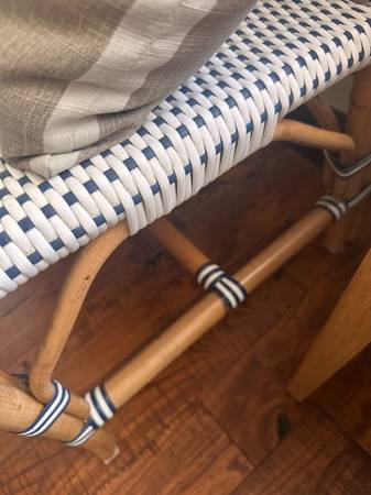 Almost pristine. Navy blue. Now sold out -´. A very few places could use a little furniture pen (S&L sells these) ; or ignore and use as they are, as I did. Last photos show a Serena and Lily...