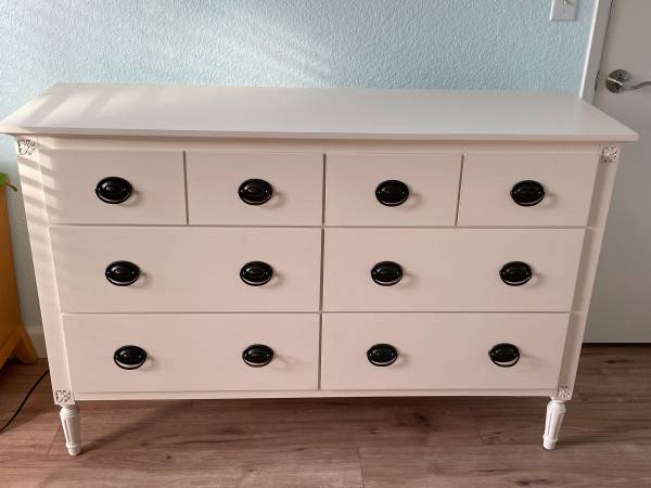 Brand new, never used, elegant French-look wood chest with 6 drawers in ivory cream color.