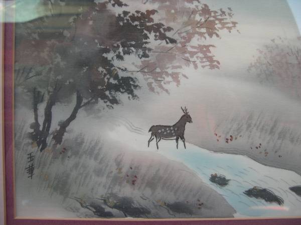 2. Deer print copy, signed in Chinese or Japanese?, professionally done in a wooden frame, 18"L x 15"H excellent condition - 20.00