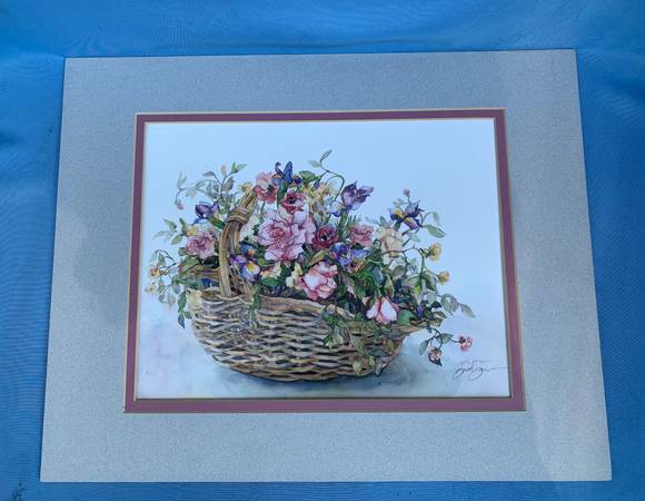 4. Jodi Jensen Signed Watercolor Print, “Fresh Picked Birthday Cheer”. Print only w/matting and back, 20”L x 16”H excellent condition - 10.00