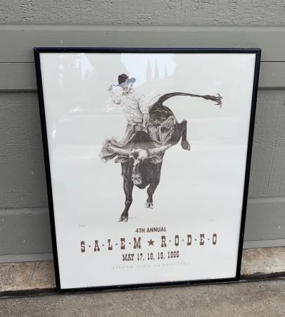 5. 1996 Salem 4th Annual Rodeo at Oregon State Fairgrounds Andrew Lewis Bull Rider Poster/Print #354/500, 16" x 20" Good condition, frame shows storage wear - 30.00