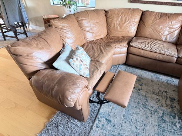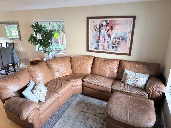 We are in Benicia and Moving houses. We have some larger Furniture that we cannot take with us. The leatherette sectional coach has a sofa bed and a recliner. It’s is in really good condition.