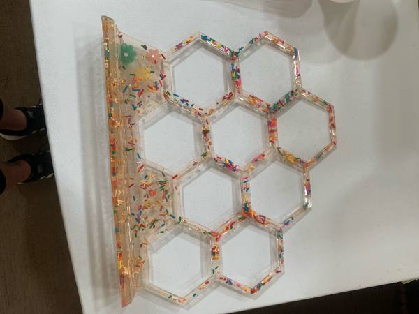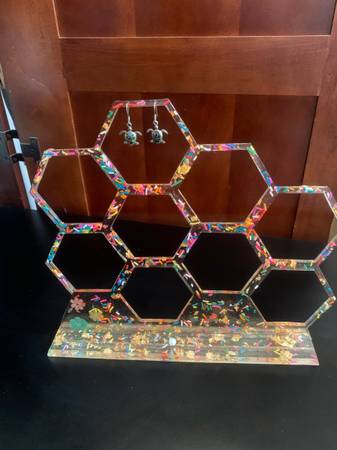 Earring rack made from resin and candy sprinkles. Mailing is an option.