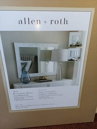 New in box Glacier Bay Frameless beveled edge mirror 30 in x 36 in Glacier $45 cash only Allen Roth mirror $49 Subject to change without prior notice. Pls call / text to arrange pick up 4.1.5 five...