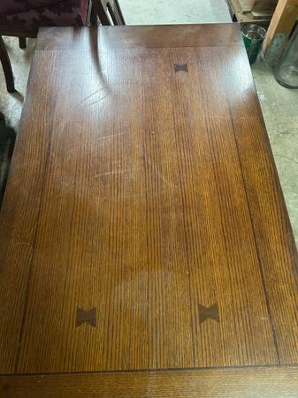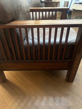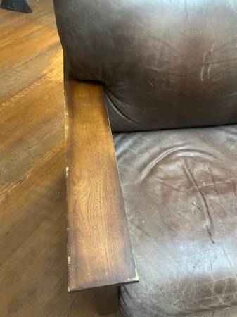 Chair - 36" deep, 34" wide, 46" tall - Leather and wood, in good condition, with no holes or tears