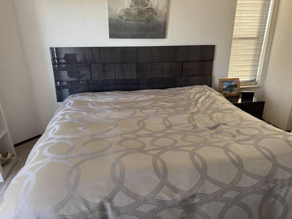 Made in Italy, the Mondiana Platform Bed is defined by elegant, bold lines and fine craftsmanship. Mondiana KING Bed (with foundation paid $300) + matching Nightstand + EASTERN KING size Tempur-Pedic mattress Medium Firm (paid $3,200). No box spring needed. Offered as a set only. If listed it is available. Mattress is wrapped in a protective cover for cleanliness purposes. Purchased in 2020.