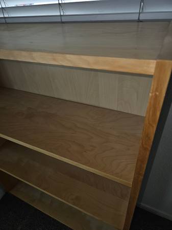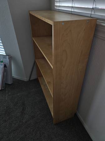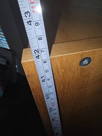 3 shelves - middle 2 are adjustable about every inch 42" height, 11" depth, 32" width Very good condition