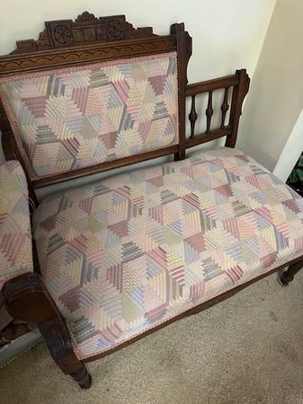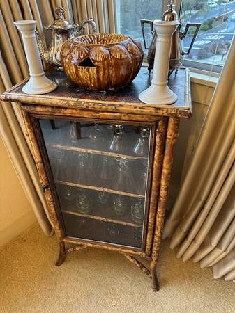 Furniture & Rugs: Sofas, quality classic American furniture, dining table with chairs, sideboard, china cabinet, marble topped tables, cabinetry, beds, mirrors, bamboo small cabinet, Robsjohn Gidding slipper chair, mid century desks, more! Rugs include terrific, good condition small and runner sized hand tied rugs on multiple floors.
