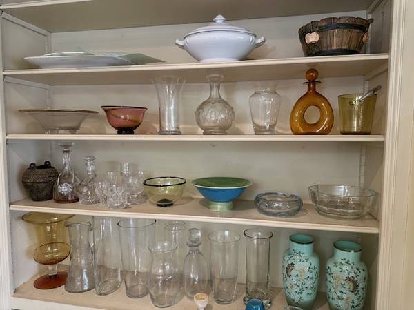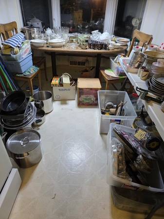 Kitchenware & Collectibles: A well stocked kitchen is present. Collectibles include china and crystal, vases, dishware, lots more.