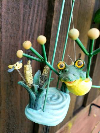 Charming and Delicately made Green Frog with Pond Plants chime Ornament. A stunning wind chime ornament that will be a beautiful addition to your collection. Makes a great gift for Mother's Day and other holidays.