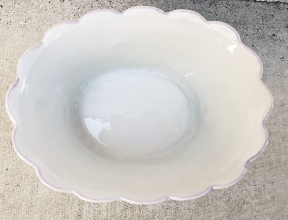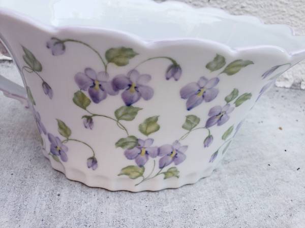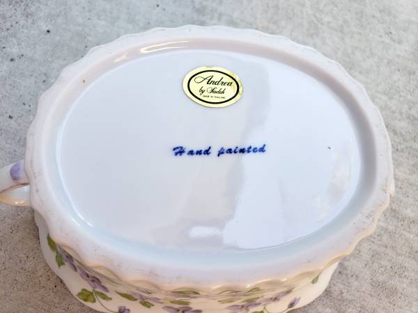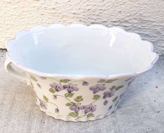 Dimensions: 7.5" L x 5.5" W x 3.75" D New High-Quality, Hand-painted with lots of details (scalloped edge + more) charming porcelain basket/container for * Decorating your home * Using as a planter...