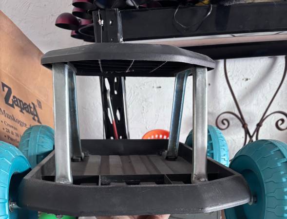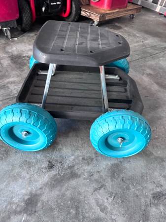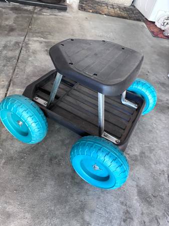 Used rolling garden chair. Rubber wheels. See photos with measurements. Please call if you're interested. Don't text or email. Won't red pop nd if you text or email
