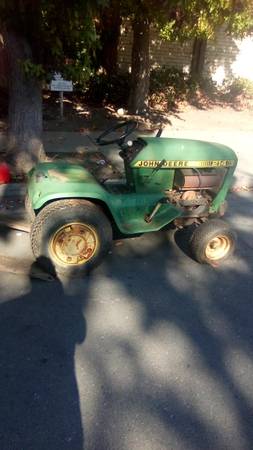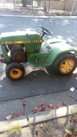 John Deere 214 runs drives good......need battery jumpstart......one front tire flat.. send your phone number I have a video of it running Garden tractor have seat springs rear wheel weights