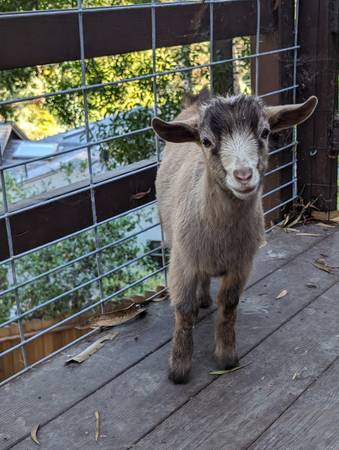 - Nemo born 2024: pint sized nugget chocolate w/moonspots. He's smaller than the typical Nigerian dwarf goat!