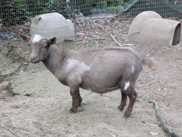 - Two wethers born July (2025): one is blue eyed with random white over chamoisee the other is a dilute chocolate color