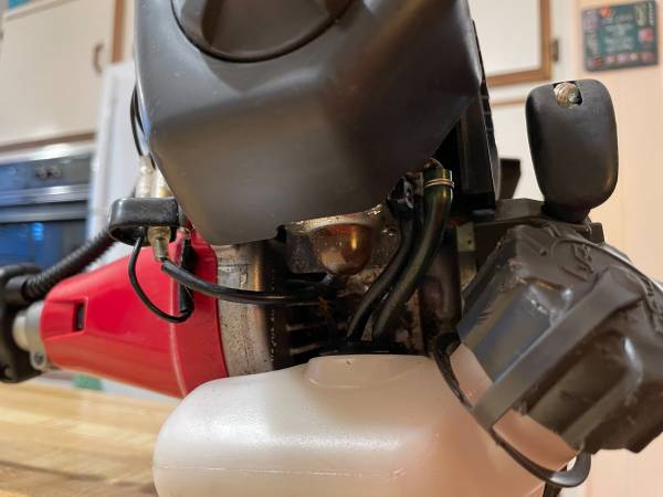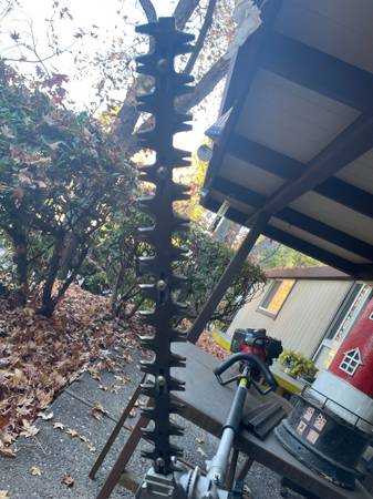 Starts easily with the right premix gas. Blades are sharp. Has the adjustable angle blades that form an "L" for cutting 90 degrees to a straight up held hedge trimmer, and less than that all the way to straight up. (0-90 degrees). The steel blades are strong cutters and have lasted a long time and are still sharp. I have lubricated them each time I used it. It is a very strong machine and will cut some heavy branches.
