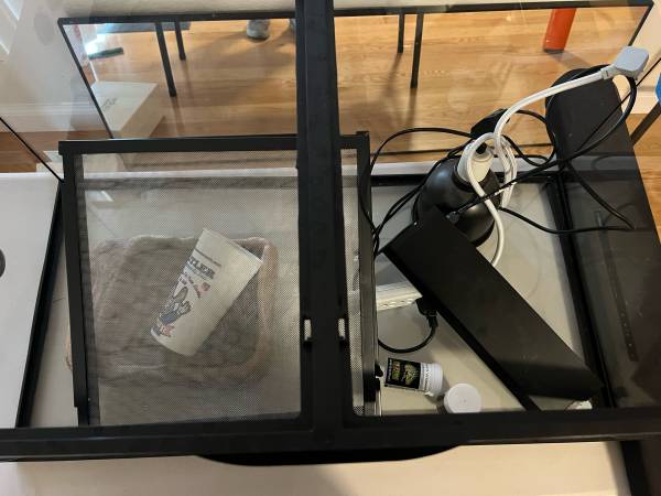 Used for 1 month for 3 box turtles. We no longer need it. Has a light and heat lamp as well.
