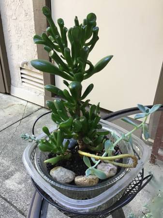 garden scissors-$8 used, succulents ($5-20) planters-$5-7 each, New baskets with lining, White rope basket, Containers -$3