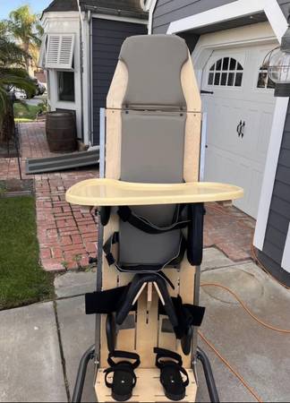 Adult Standing frame, only used a few times. Laydown to standing frame. Hand crank to 90 degrees. Includes front table. Back knobs all adjustable.