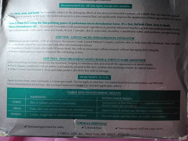 Box damaged. 95% full. Polishes away roughness, dryness and small bumps. Visibly diminishes imperfections and softens texture. (For use only on the body)