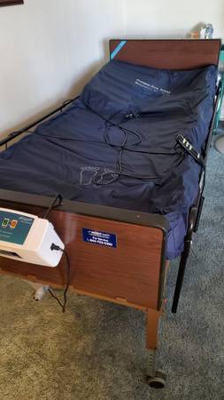 This bed worked great for my elderly mother. The bed is fully electric and comes with full length side rails and rail pads. The mattress is a Protekt Aire 3000 alternating pressure mattress with pump. We will also include a rolling overbed table. Everything is in working condition.