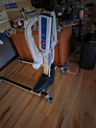 LIKE NEW HOYER LIFT, PATIENT LIFT, INVCARE RELIANT 450, ELECTRIC, WITH 2 SLINGS AND EXTRA BATTERY. Please see pictures and email if you have any questions. Thank you.