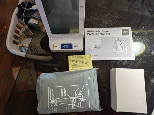 Monitor is supplied with cuff, AC power adapter, and 4 AA batteries'