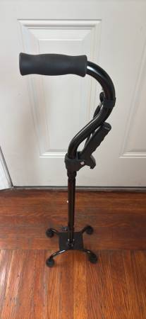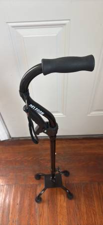 For sale is a nearly new adjustable four legged cane. Purchased for a surgery recovery but never used. $40 new. Yours for $20. Pickup in north Oakland.