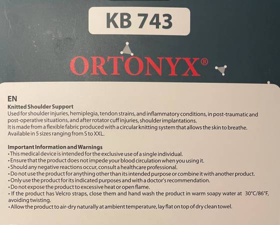 used for shoulder injuries, hemiplegia, tendon strains, and inflammatory conditions, in post-traumatic and post-operative situations, and after rotator cuff injuries, shoulder implants. It is made from a flexible fabric produced with a circular knitting system that allows the skin to breathe.