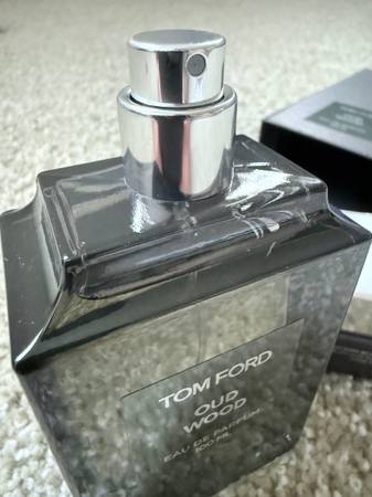Here is a basically brand new Authentic Tom Ford Oud Wood 3.4fl oz. with original box. Only missing 2 sprays……. 100000% Authentic. I do not mess with fakes. Please observe pictures as they show the authenticity and the actual item for sale. I also included a picture where there is a code in the inner box which reads (T1XG-01-0383). Fake Tom Ford colognes do not have these codes on inner box at all. You can tell by texture of box, Fonts on box, atomizer, thin straw and the reflective sticker on front of bottle. This is Authentic as it gets. I’m here in Tracy Hills. I have several other like new bottles of colognes and also have decants. Do not hesitate to ask any questions.