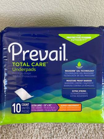 Prevail Total Care Underpads, Extra Large: 30 x 30" - Pack of 10.