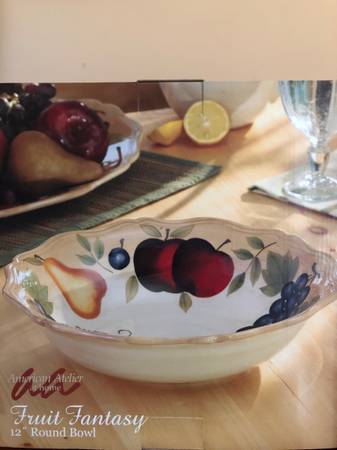 American Atelier at Home. Fruit Fantasy. Ceramic tableware. Dinnerware set for 8 (soup, salad, dinner plates, mug) - 32pc. China set.
