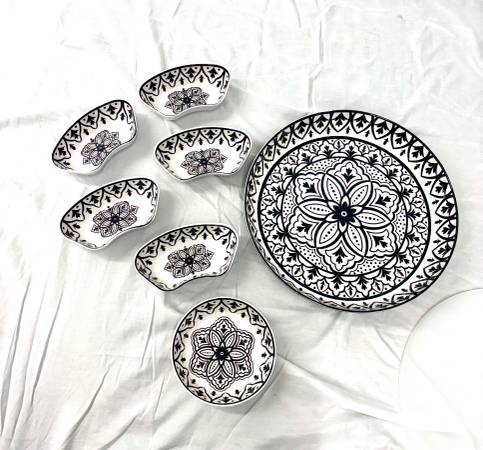 Perfect for picnics, BBQs, parties, and potlucks. Used once. Comes with: 1 large lazy susan bowl 5 smaller bowls that fit around 1 smaller center bowl. Comes with a lid for easy portability and...