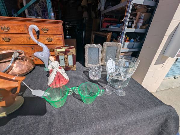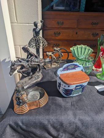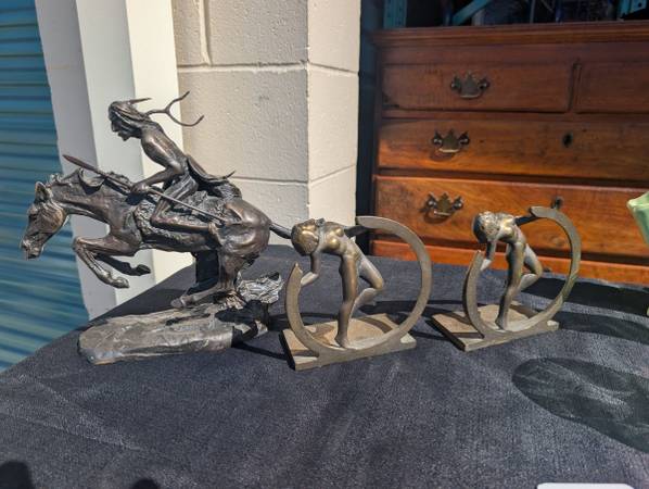 Art Deco Bookends $80.00 Baccarat French crystal Eagle Figurine $125.00 Ballerina Figure statue 13" Bronze/copper $100.00 Bulldog copper catch- all 6x6 $85.00 Carnival Glass Panther orange footed...