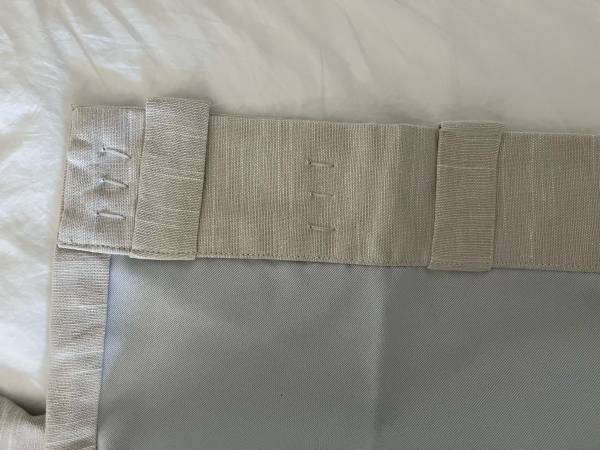 New in package. 2 panels Pole tabs at the back for hanging without hooks. Also can be hung with drapery rings and hooks are provided but not rings and rods.