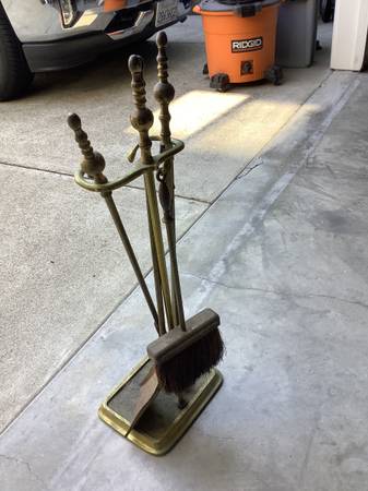 Vintage Brass Fireplace tools $50.00 Tools including stand,poker,shovel,broom & tongs. Call landline no texting. Thanks