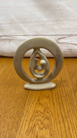 Beautifully simplistic lines in this lovers or parent / mother/ father with infant or child stone statue figurine. Love and compassion is captured in this sleek abstract statue/figurine.