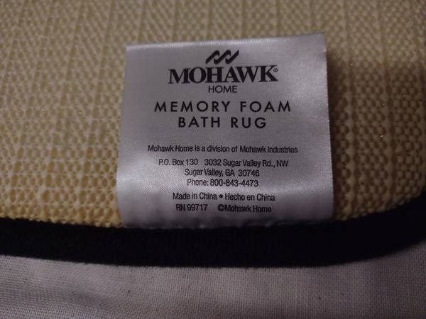 18 by 27-Inch Black Memory Foam Cushioned Bath Rug. Soft to touch. Cushiony step. Machine washable. Skid resistent backing. New, never used. Mohawk Brand.