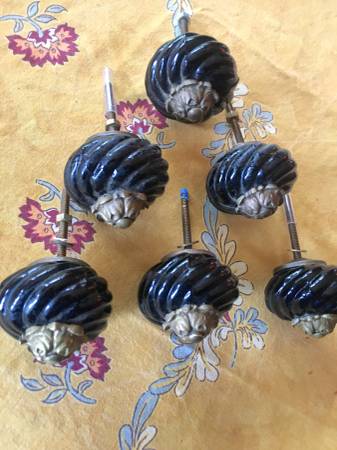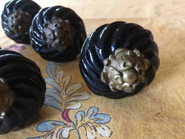 New! Six Anthropologie Black Glass and Solid Brass Cabinet Pulls -...