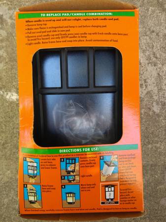 Contains: 1 Reusabe lamp 4"L x 4"W x 7"H, 1 Monsquito repellent pad, 1 Candle.